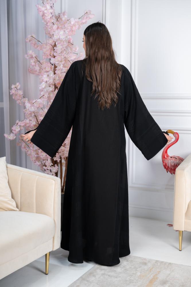 5. تصميم عصري وأنيق: تُمثل هذه العباية التصميم العصري الأنيق الذي يناسب المناسبات الرسمية والغير رسمية على حد سواء. بفضل تفاصيلها الدقيقة وتصميمها الفاخر، تستطيعين ارتداؤها في المناسبات الاجتماعية، حفلات العشاء، أو حتى الخروجات اليومية.