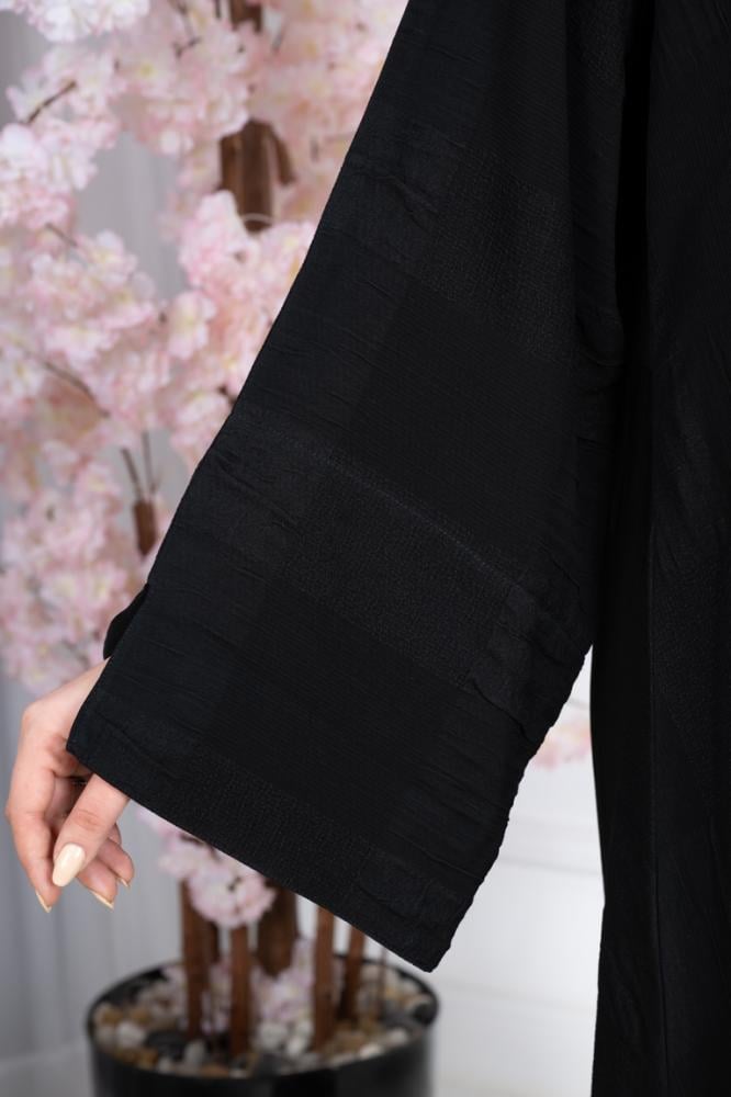4. تقفيلة أزرار حسب الطلب: العباية مزودة بتقفيلة أزرار يتم تعديلها حسب الطلب، مما يتيح لكِ تحديد الطول أو الأسلوب الذي يناسب إطلالتكِ. سواء كنتِ تفضلين إغلاق العباية بشكل كامل أو إظهار قليل من الأناقة، تتيح لك هذه الميزة تخصيص العباية وفقًا لذوقكِ الشخصي.