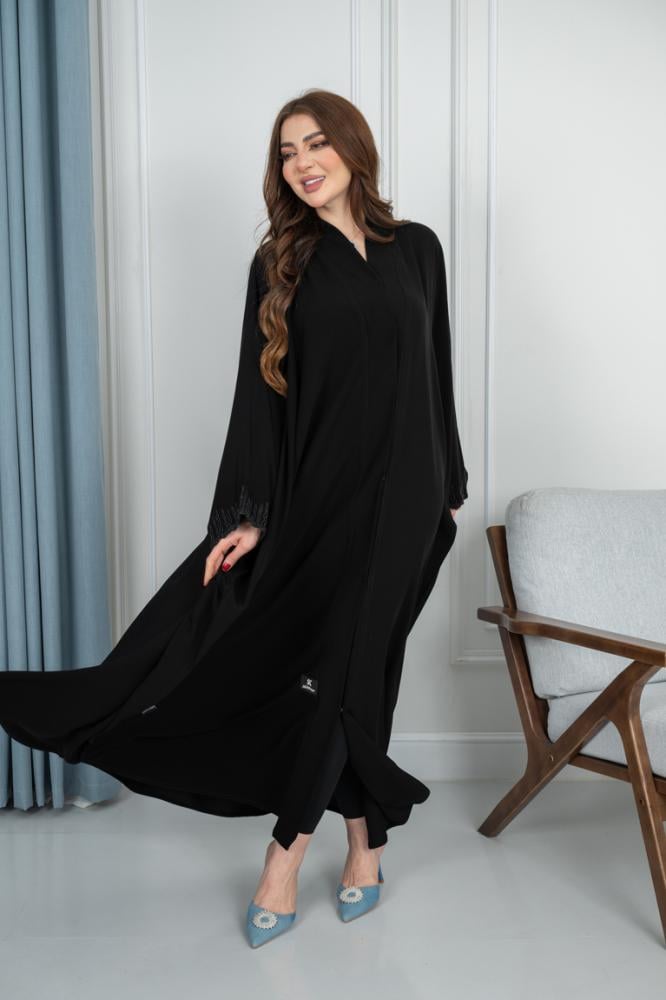 - قماش ملكي كوري درجة أولى: تم اختيار قماش كوري ملكي فاخر من الدرجة الأولى لهذه العباية، مما يضمن لكِ مظهرًا أنيقًا و راحة استثنائية طوال اليوم. القماش يتمتع بـ نعومة و مظهر فاخر، مما يجعل العباية مثالية لجميع المناسبات الرسمية وغير الرسمية.