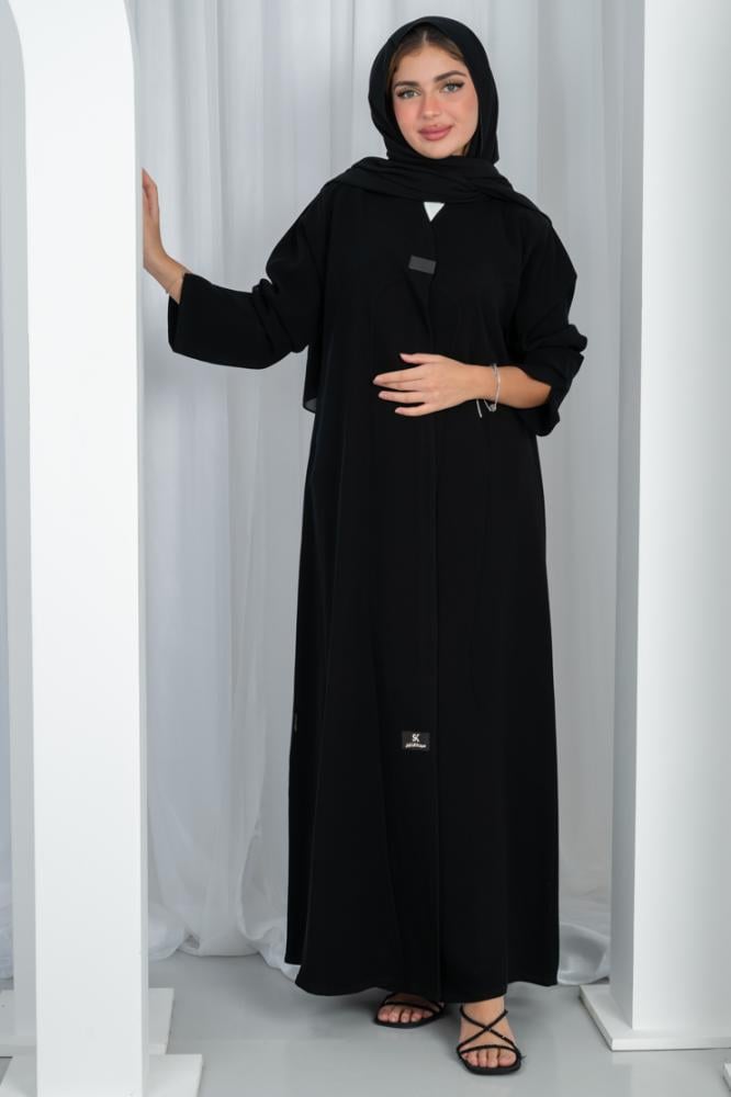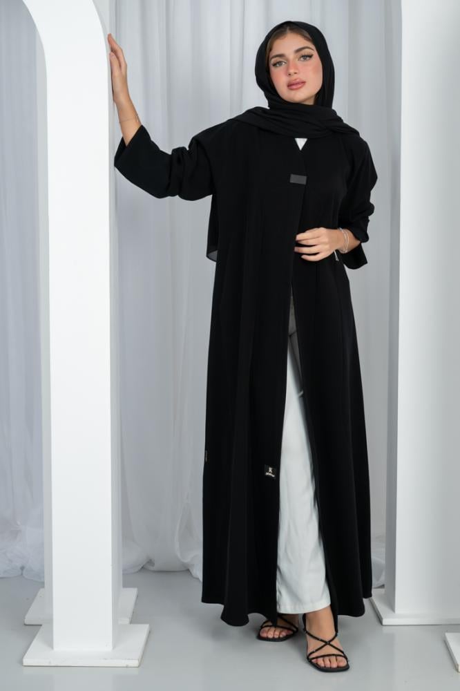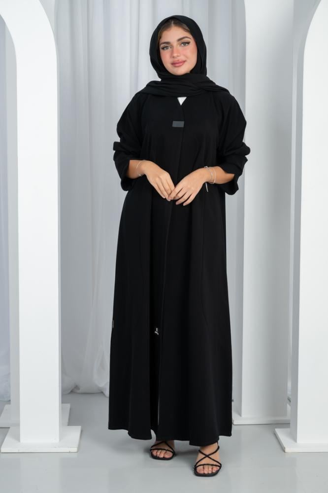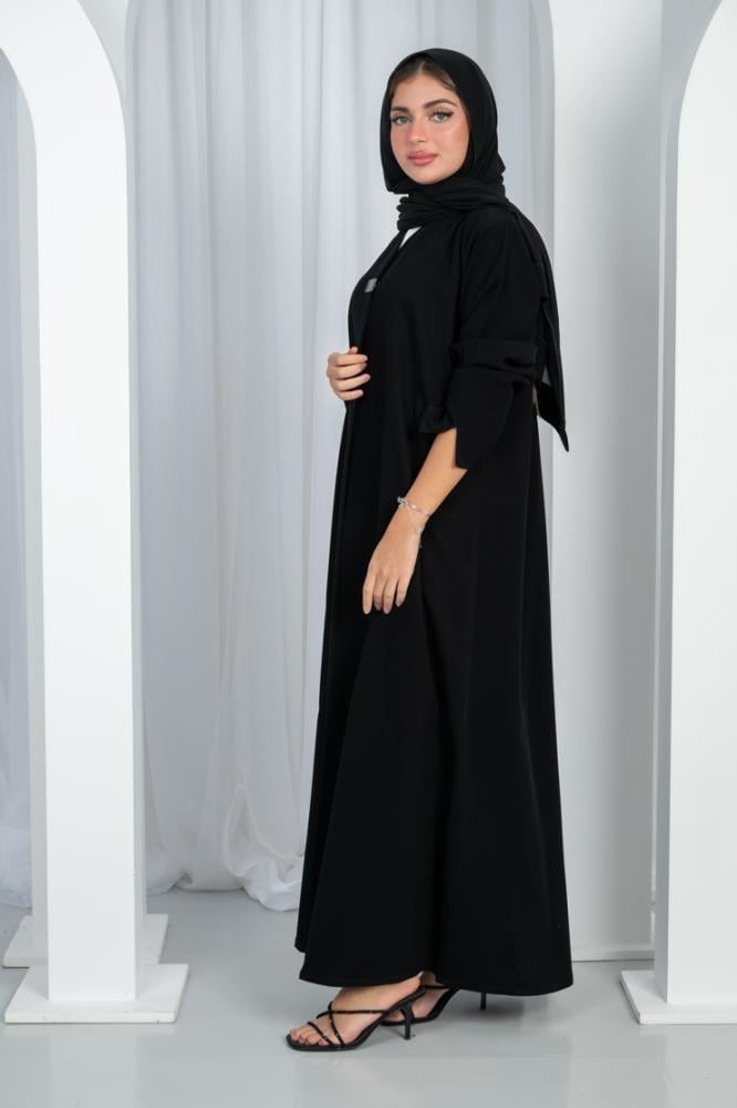 عباية كريب بسواد فاحم درجة أولى وأكمام عادية بقصة سبعة