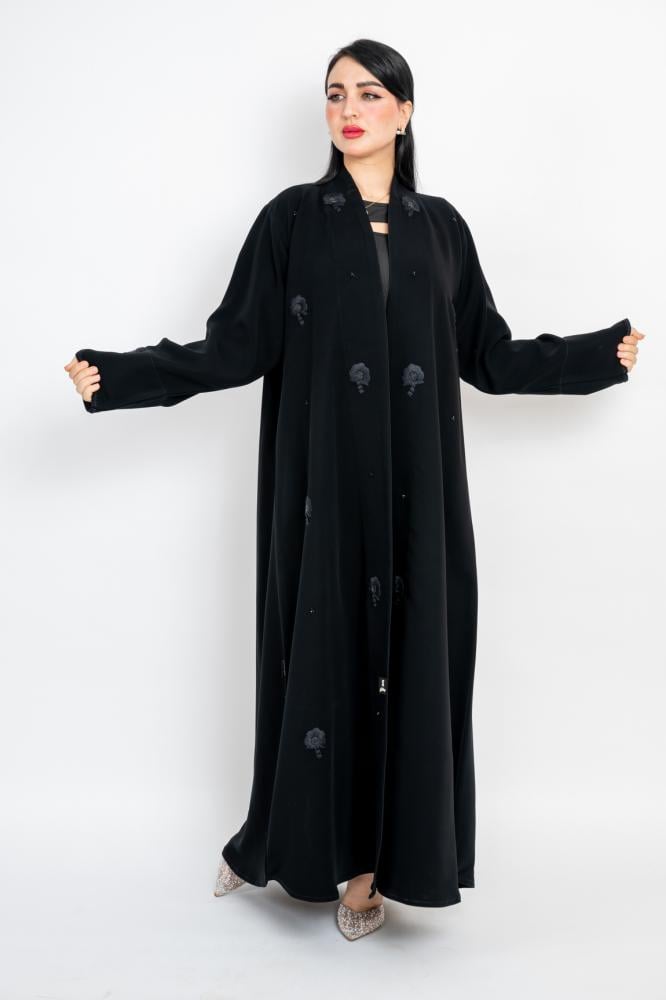 عباية كريب فخامه سواد فاحم نص كلوش خرز يدوي