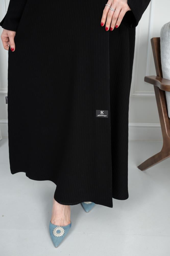 - التصميم المقلم الأنيق: تتسم العباية بتصميم مقلم يجعلها تبدو عصرية وأنيقة في كل مرة ترتدينها. الخطوط المقلمة تضيف لمسة من التجديد والتفرد، مما يجعلها تختصر لكِ الأناقة والاحتشام في قطعة واحدة.